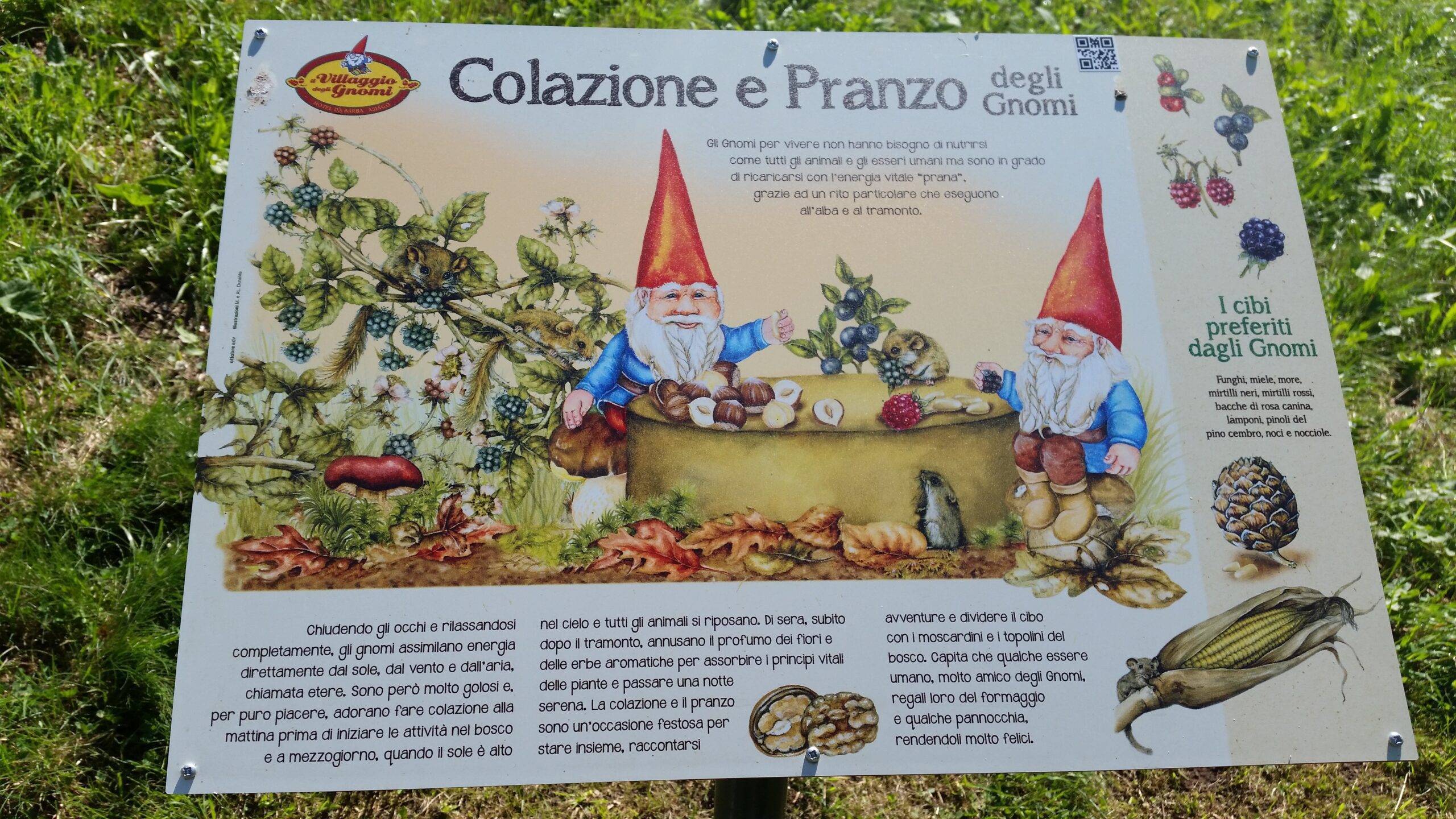 Seguendo il sentiero che conduce al villaggio si scoprono bellissimi cartelli didattici sui vari animali che popolano l’altopiano e sugli gnomi. È possibile utilizzare anche l’App per rendere il percorso ancora più giocoso.