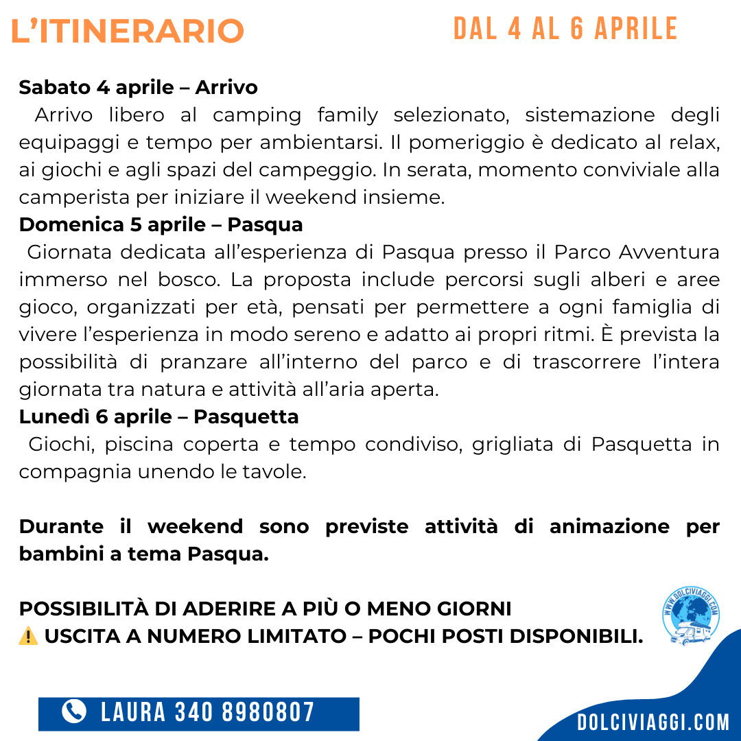 Un weekend di Pasqua pensato per famiglie che viaggiano in camper e vogliono unire natura, gioco e momenti condivisi.