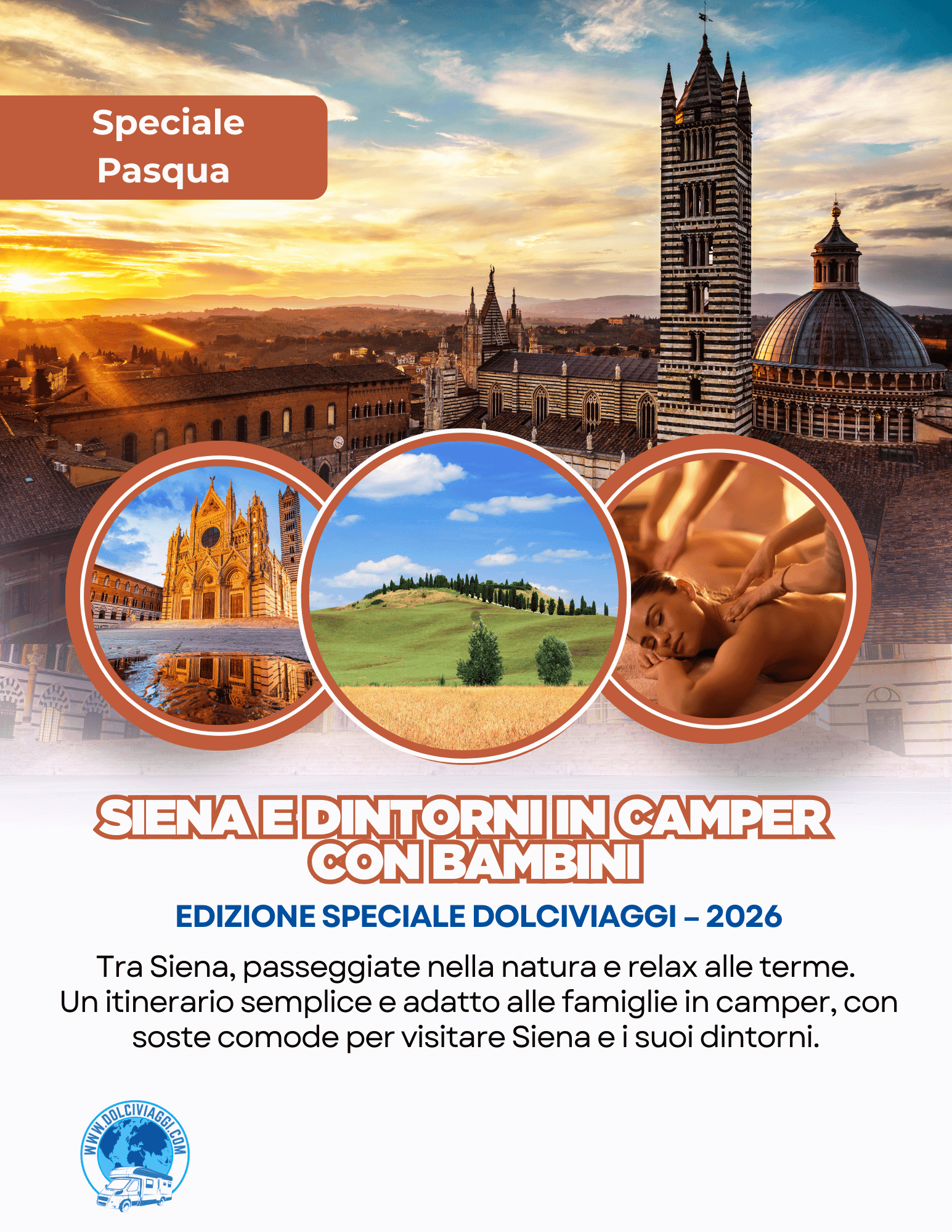 Un itinerario in camper pensato per famiglie che vogliono scoprire Siena e i suoi dintorni nel periodo di Pasqua.